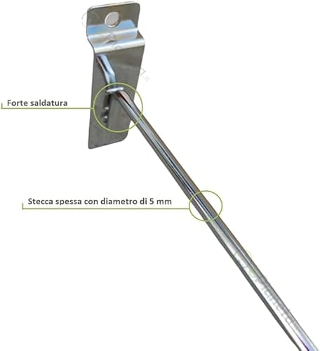 TOT ELECTRIC Set 10 Ganci per Pannello dogato da 10 15 20 25 30 cm in Metallo Argento Gancio da Parete Esposizione Negozio (15 cm)