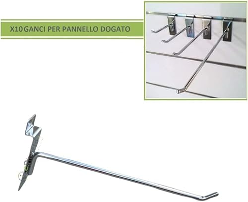 TOT ELECTRIC Set 10 Ganci per Pannello dogato da 10 15 20 25 30 cm in Metallo Argento Gancio da Parete Esposizione Negozio (30 cm)