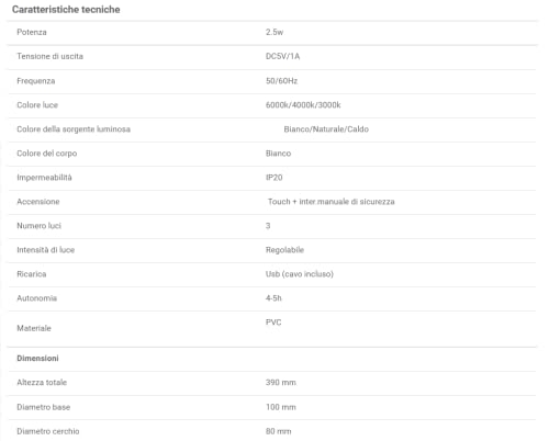 Dotata di batteria al litio ricaricabile tramite USB che si può collegare sia alla corrente elettrica di casa o ad una porta USB del vostro PC con un autonomia di 4/5 ore.