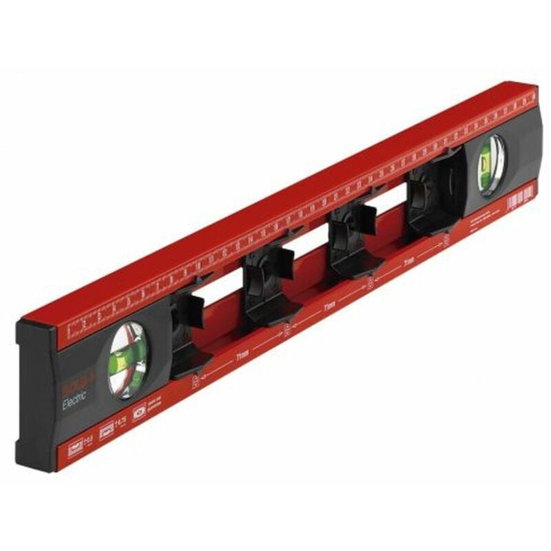 Livello di spirito di marcatura ELECTRIC • Profilo C in alluminio con pinze flessibili • Con 1 livello orizzontale e 1 verticale • Tappi terminali ammortizzanti • Magnete al neodimio per un'elevata forza di attrazione installato lateralmente • I tamponi in plastica impediscono lo scivolamento e proteggono la superficie • ridimensionamento mm • 4 marcature nella distanza standard di 71 mm secondo DIN 49075 • Precisione di misura in posizione normale ±05 mm/m • Precisione di misura in posizione di movimentazione ±075 mm/m