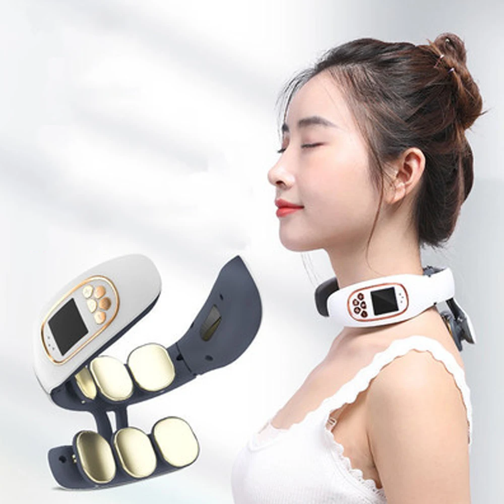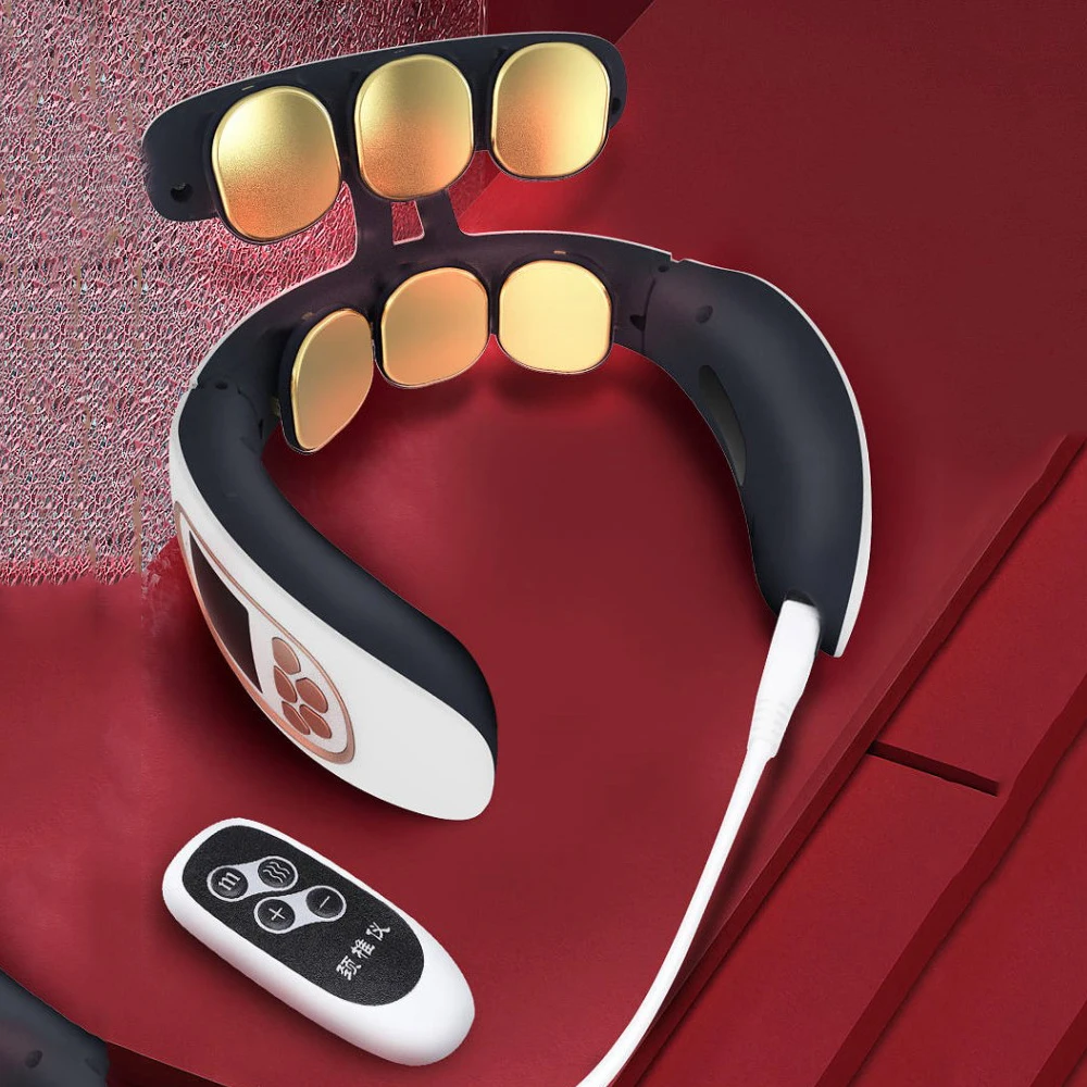 6 Head Electric Neck Massager 4in1 TENS Pulse Neck Shoulder Massage Heating Pain Relief Tool Muscle Relaxation Heaalth Care