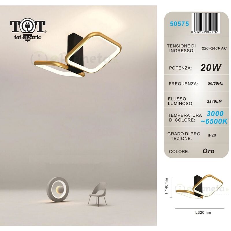 Plafoniera quadrata dal design moderno e minimal, composta da 2 forme geometriche inclinate, munita di 2 tonalità led a scelta tra luce fredda e calda. Le linee pulite ed eleganti la rendono ideale come lampadario da soffitto per camera da letto, soggiorno, cucina, ufficio, bar e ristoranti. Caratteristiche tecniche Uso Interno Potenza 20W Flusso luminoso 2240lm Colore corpo Bianco - Nero - Oro Voltaggio AC220-240V Frequenza 50/60Hz Dimmerabile No Luce Bianca + Calda Materiale Alluminio+PVC Tipologia: A Soffitto