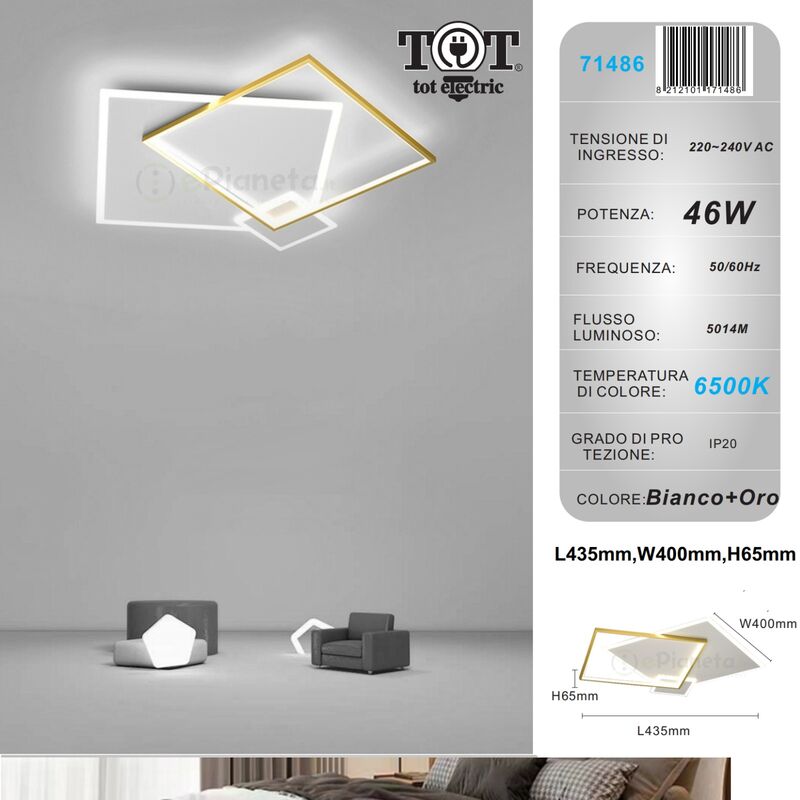 Plafoniera quadrata dal design moderno e minimal. Realizzato in alluminio e PVC oro, è composta da 3 quadrati sovrapposti in modo da creare un elegante gioco tridimensionale. Le linee pulite ed eleganti la rendono ideale come lampadario da soffitto per camera da letto, soggiorno, cucina, ufficio, bar e ristoranti. Caratteristiche tecniche Uso Interno Potenza 46W Flusso luminoso 5106lm Colore corpo Oro Voltaggio AC220-240V Frequenza 50/60Hz Dimmerabile No Luce disponibile Bianca - Naturale Materiale Alluminio+PVC Dimensioni Larghezza 435 mm Altezza 400 mm Tipologia: A Soffitto