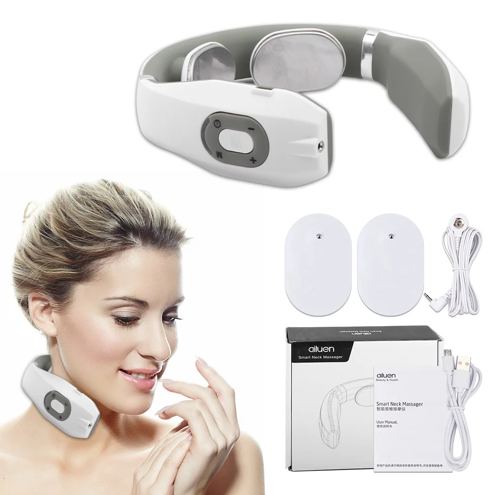 Electric Pulse Neck Massager Rechargeable Cervical Traction Therapy Massage Stimulator Pain Relief Heating Electrode Massage Pad