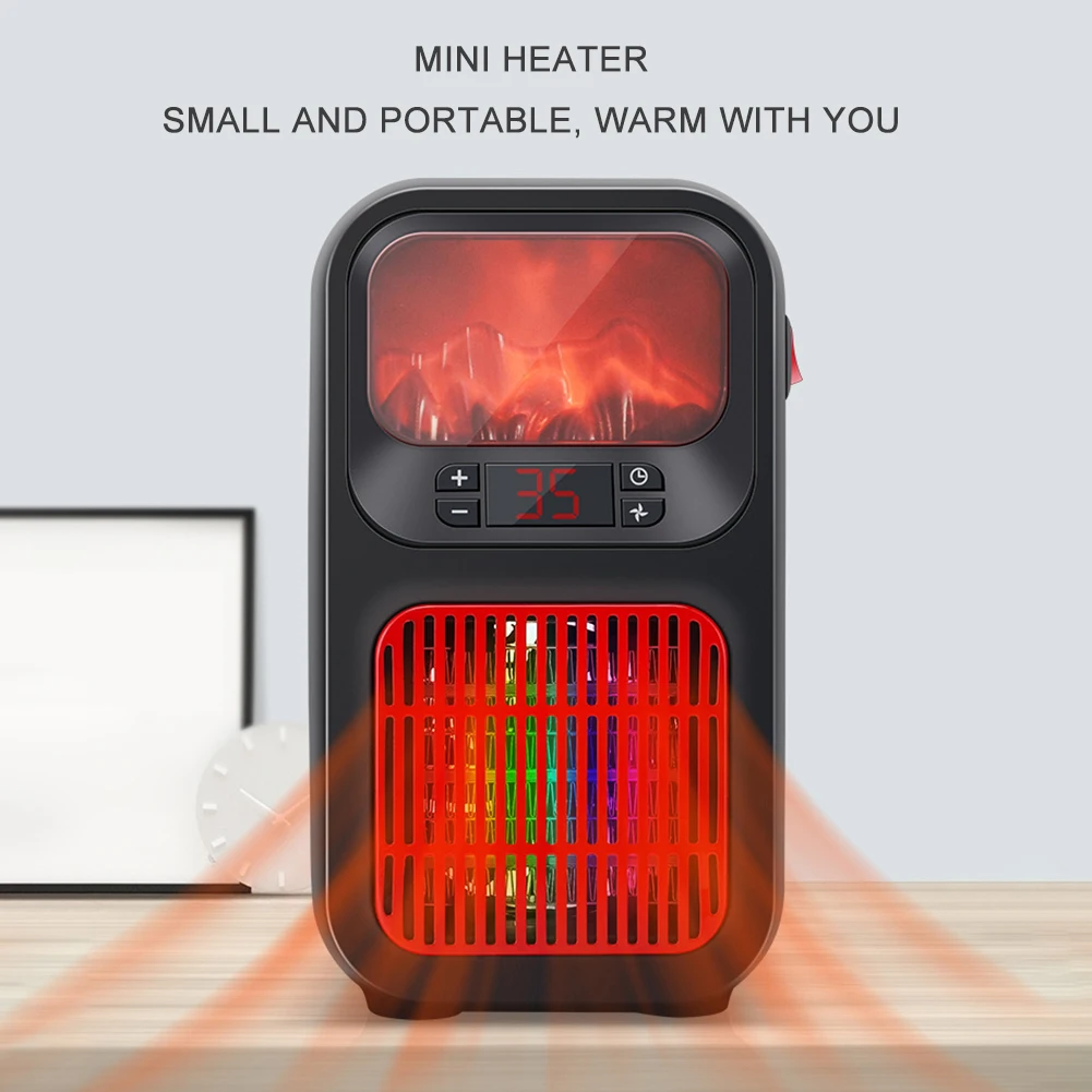 500W Mini Electric Stove Heater Winter 3D Simulation Flame Warmer PTC Ceramic Heating Timing Heater with Night Light