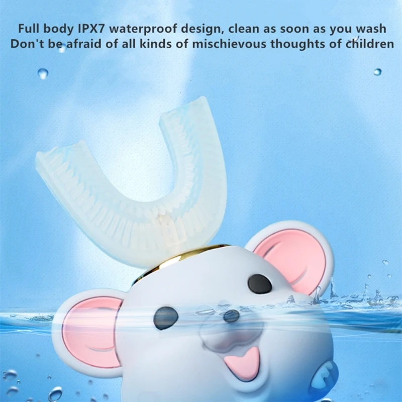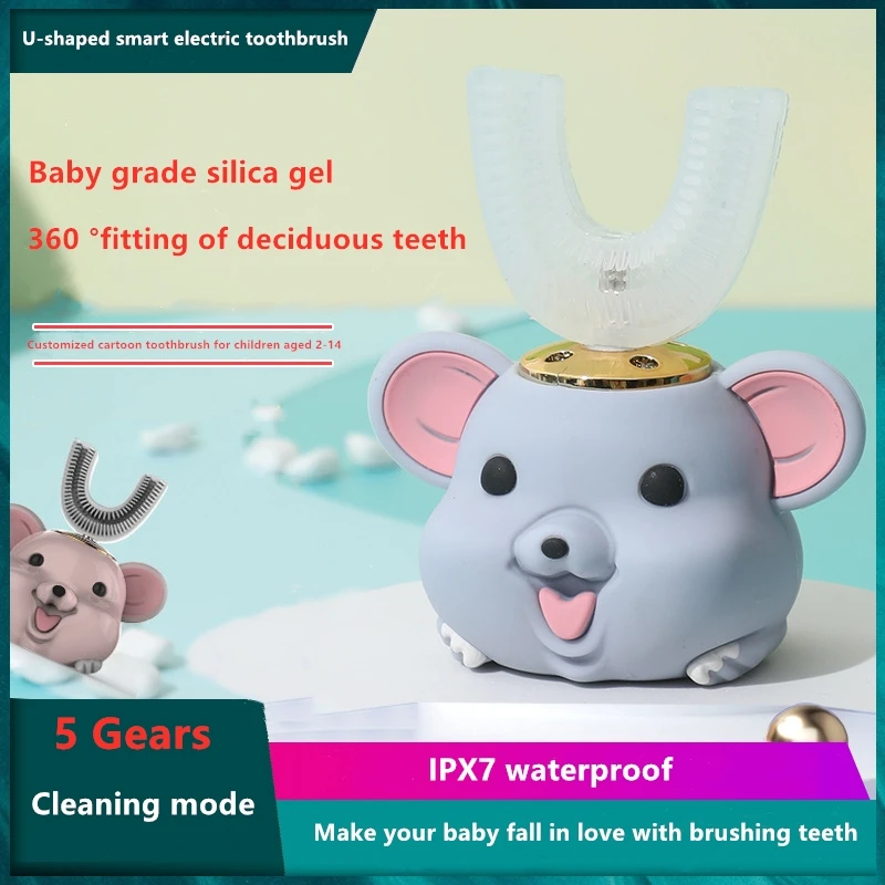 Electric Toothbrush Kids 360 Degrees Sonic Automatic Waterproof Cartoon Baby Loves His Teeth U Type Dental Care Tooth Brush