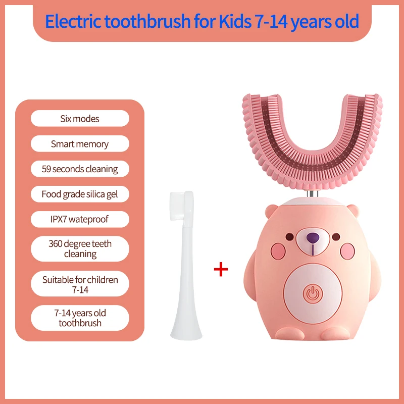 Electric Toothbrush for Kids Silicon Automatic Ultrasonic Teeth Tooth Brush Cartoon Pattern for Children Smart 360 Degrees U