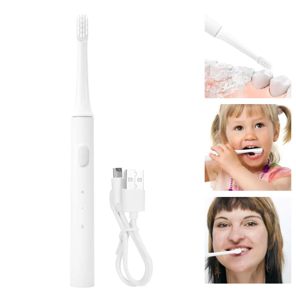 Electric Toothbrush Sonic Battery Power Waterproof Toothbrush with 2 Modes White Electric Bristle USB Rechargeable Oral Hygiene