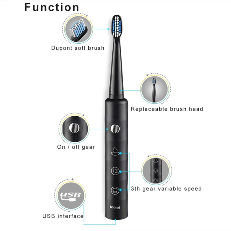 Electric Toothbrush Sonic Wave Rechargeable Travel Case Smart Chip Toothbrush Head Replaceable Teeth Whitening Brush Gift !
