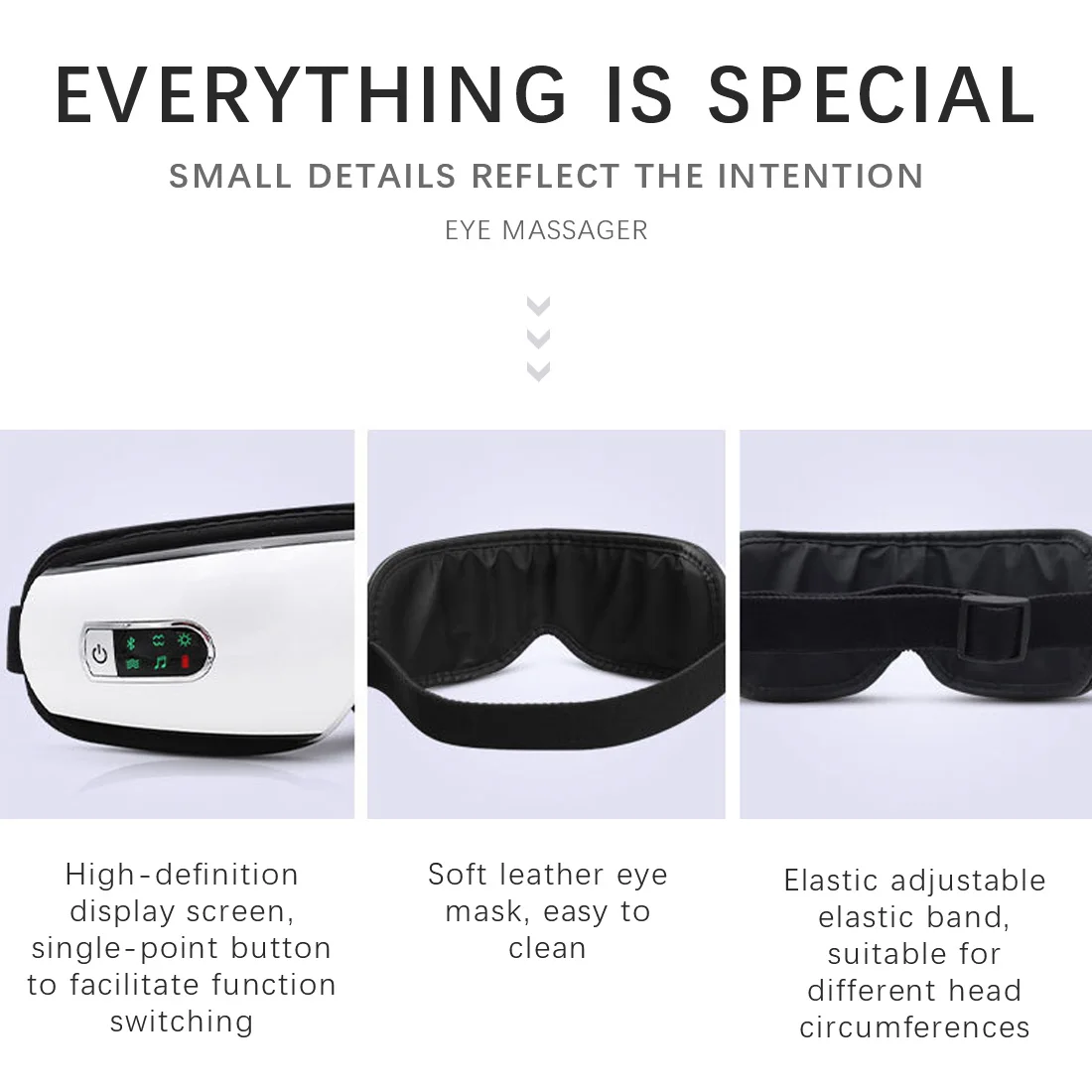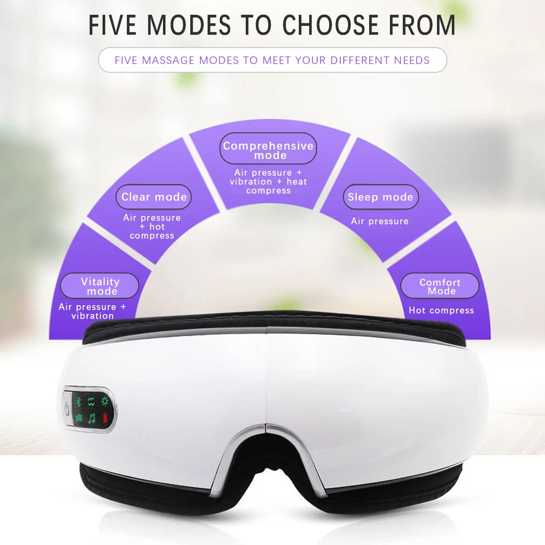 Electric Vibration Eye Massager Bluetooth Eye Care Device Wrinkle Fatigue Relieve Vibration Massage Hot Compress Therapy Glasses