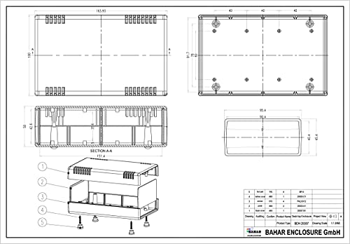 Electrical Enclosure Box Electronics DIY Project BDH 20007-A2 - Scatola in plastica ABS, 164 x 100 x 51 mm, colore: Nero