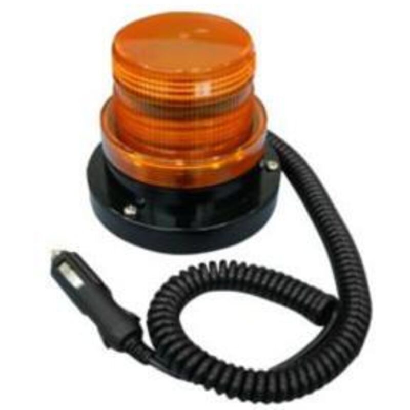 AMBAR Colore Strobo Warning Light Base con Magnete Lunga durata e 75 lampi al minuto Componenti incapsulati con resina epossidica che protegge da polvere, umidità e vibrazioni. Lente in policarbonato, resistente alle vibrazioni e al calore, avvitata alla base per facilitare il cambio del tubo stroboscopico. Potente magnete sulla base per assicurare il suo fissaggio. Per altre opzioni di fissaggio, viti e accessori sono inclusi. Connessione a spirale estendibile da 0,8 metri a 3,5 metri con connettore per l'accendisigari dell'auto. Pilota lampeggiante all'interno, per indicare il corretto funzionamento. Se il flash del tubo stroboscopico non funziona, ma la luce pilota sì, significa che il tubo deve essere sostituito. Tipo di luce di avvertimento Colore ambrato Dimensioni Ø129 x 105 mm Materiale plastica Scatola di presentazione Grado di protezione IP65 Tensione d'ingresso da 12 VDC a 36 VDC Materiale lente in policarbonato