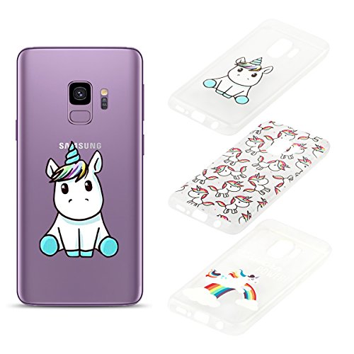 Electro-Weideworld [3 Pack] Cover Samsung Galaxy S9, 3D Creativa Cover TPU Gel Silicone Bumper Protettivo Custodia Case Cover per Samsung Galaxy S9,Unicorno 1
