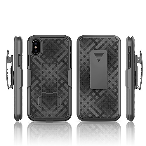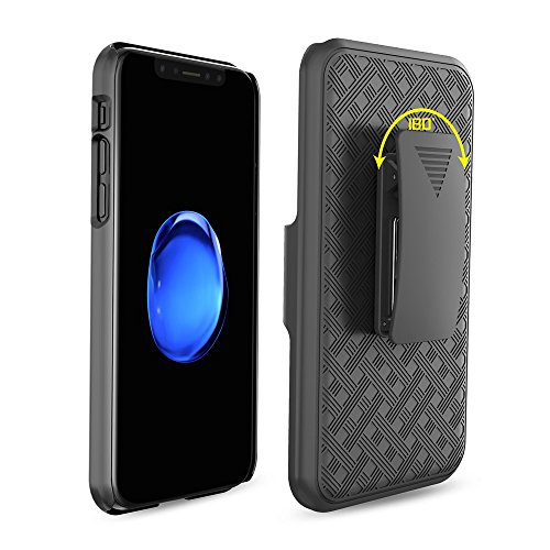 Electro-Weideworld iPhone X Custodia, Combo Shell & Fondina Case, Super Slim Shell Caso con built-in Kickstand e Cintura Girevole Clip, Cover per iPhone X, Nero