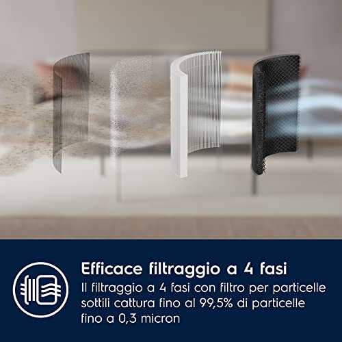 Electrolux 500 Purificatore d'aria EPO50371UG Pure, compatto e connesso, sistema di filtraggio a 4 fasi, Grigio