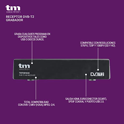 TM Electron TMTHD1030 Ricevitore DVB-T2 con funzione registratore PVR USB, Timeshift e compatibile con DVB-T, MKV (H264), MPEG-2/4