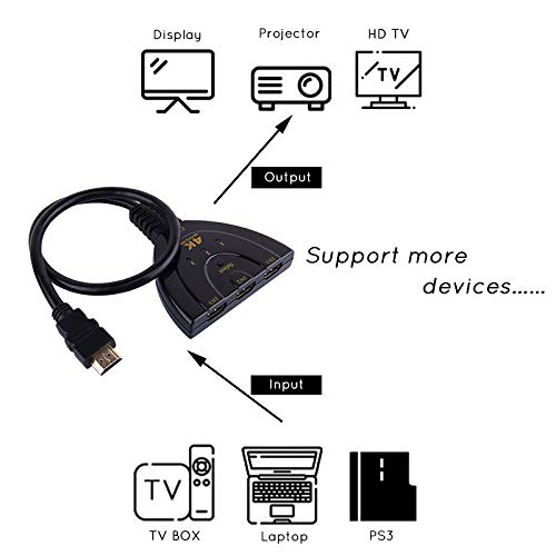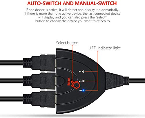Pjp electronics - Interruttore HDMI 4 K, HDMI 3 in 1 con cavo HDMI, supporta 4 K/Full HD1080p/3D, HDMI Switch Splitter HUB Plug and Play