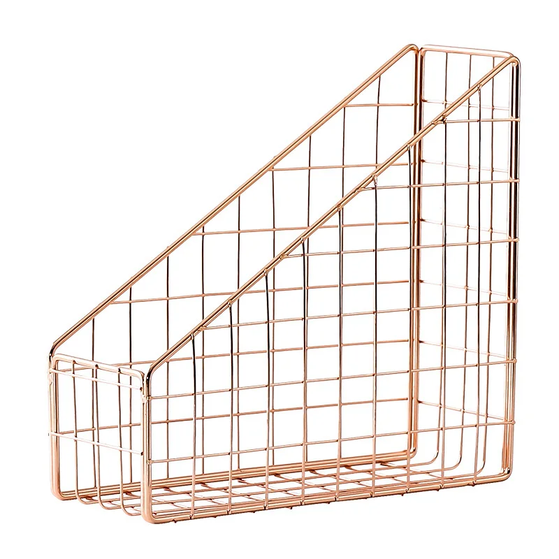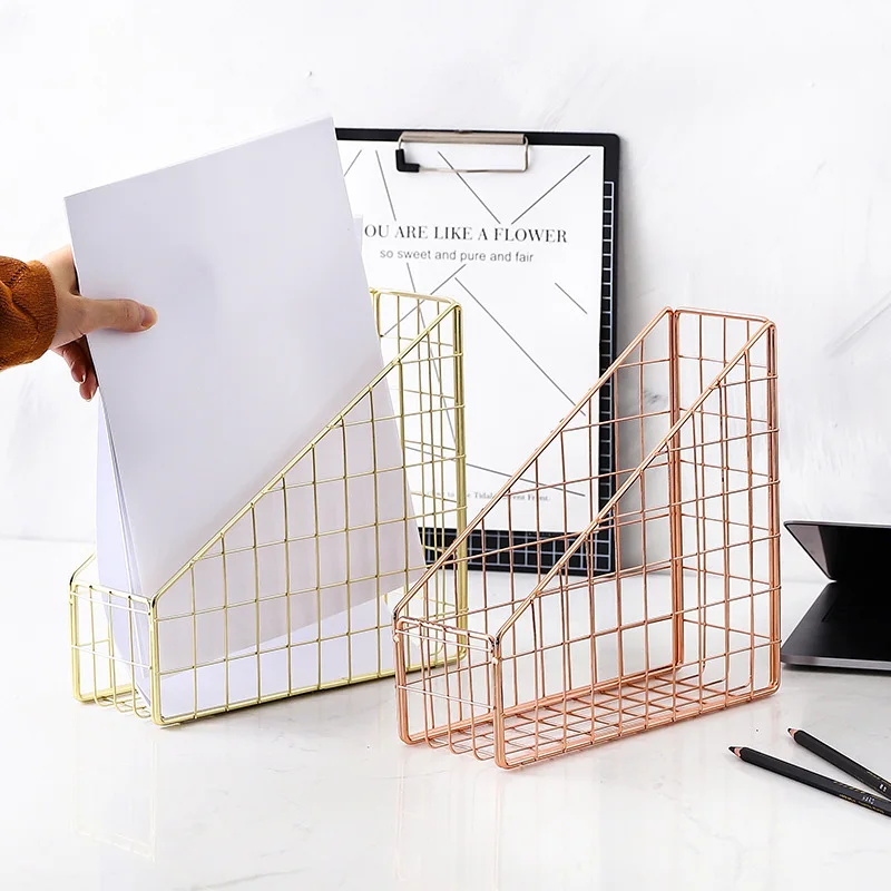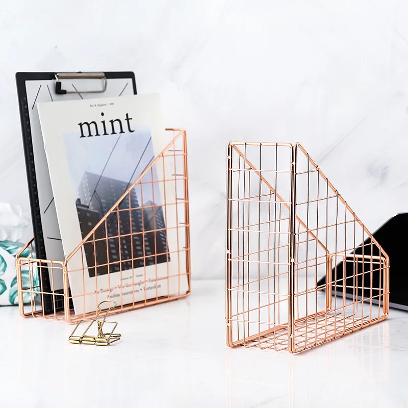 Rose Gold Electroplated Iron Book Holder Desktop Shelf File Magazine Book Stand Office Home Stationery Organizer Holder