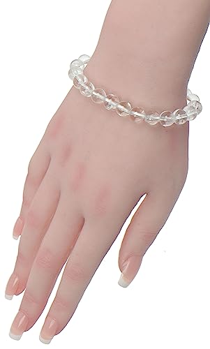 ELEDORO PowerBead - Braccialetto elastico da donna, in pietre preziose, 8 mm, 17-18 cm e pietra preziosa, colore: bianco, cod. PB2018-001