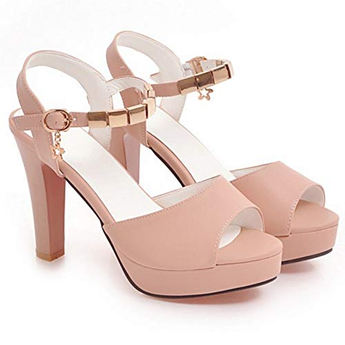 ELEEMEE Donna Elegant Tacco Chunky Sposa Sandali Platform Peep Toe Summer Scarpe con Cinturino alla Caviglia Pink Numero 42 Asian