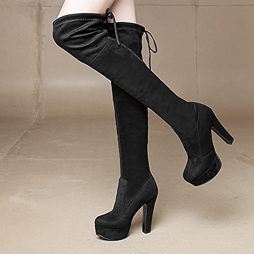 ELEEMEE Donna Moda Tacco a Blocco Stivali Stretch Platform Senza Chiusura Sopra Il Ginocchio Stivali Black Numero 36 Asiatico