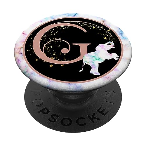 Elefante arcobaleno iniziale lettera G con monogramma rosa PopSockets PopGrip Intercambiabile