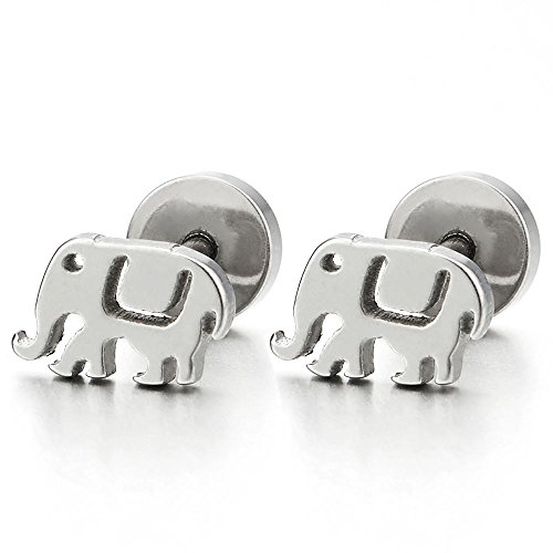 Elefante Orecchini da Donna Ragazze, Orecchini a Lobo, Acciaio Inossidabile, Riavvitare, 2 Pezzi