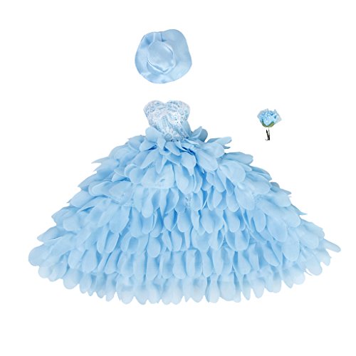 Elegante abito da sposa blu per bambole da 12 pollici con cappello e fiore