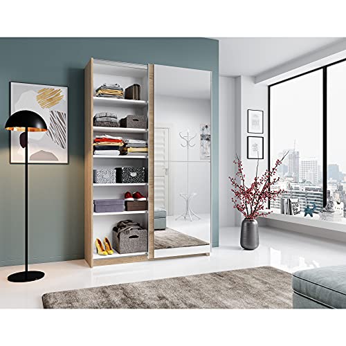 FAST Elegante Armadio / Guardaroba con anta a specchio e molto spazio - Armadio versatile in Rovere Sonoma - 125 x 195 x 38 cm
