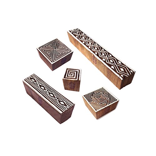 Elegante Forma Zig Zag e Ikat Legno Timbri per Stampa (Set di 5)
