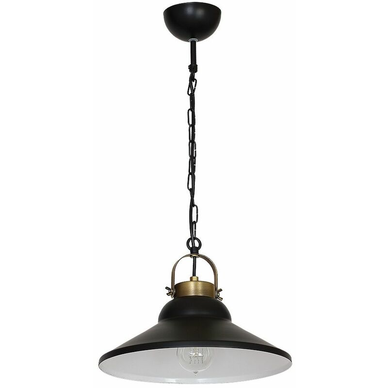 Dettagli del prodotto Materiale: Metallo Dimensioni: larghezza: 310 mm, profondità di sospensione: 620 mm, lunghezza: 310 mm Attacco: 1x E27 fino a. 60 Watt Classe di protezione dagli spruzzi: IP20 Colore: Nero, ottone vecchio Peso: 1200 grammo Descrizione del prodotto Lampadario a sospensione in stile industriale;