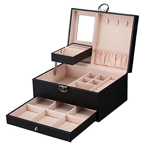 DCCN Elegante portagioie in pelle PU, portagioie con specchio