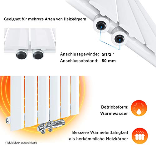 ELEGANTE Termoarredo Design Flat 1800 x 539 mm con Termostato Multiblocco Cromato, Radiatore Piatto Singolo Strato Verticale Attacco Centrale
