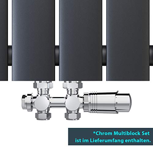 ELEGANTE Termoarredo Design Flat 1600 x 616 mm con Termostato Multiblocco Cromato, Radiatore Piatto Singolo Strato Verticale Attacco Centrale