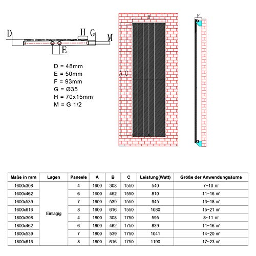 Dimensioni (AxLxP): 1600x616x49mm, potenza: 1080Watt, colore: antracite (RAL 7016)