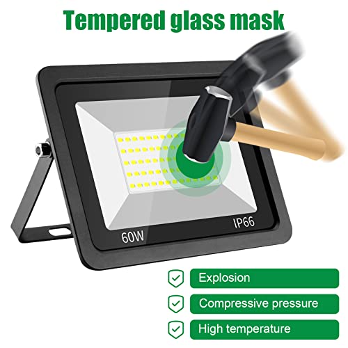 Eleganted riflettore a LED esterno 60W, SuperHell 10000LM LED Prolotilight Floodlight con Plug 6500K Freddo Builder Builder Sheider IP66 Palcio impermeabile per Hof Garden Garage Sportplace