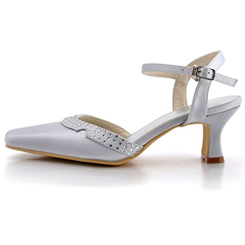 Elegantpark EP11033 Donna Punta Quadrata Slingbacks Tacco A Blocco Strass Raso Sposa Partito Scarpe