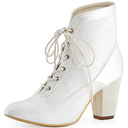 Elegantpark HC1528 Donna Punta Chiusa Tacco Alto Allacciare Ankle Scarpe Da Barca Satin Pizzo Ballo Sposa Partito Scarpe Avorio EU 41