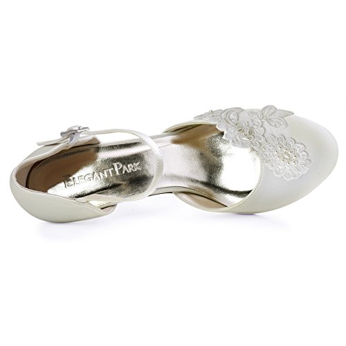 Elegantpark HC1604 Avorio Donna Punta Chiusa Appliques Perla Satin Scarpe da Sposa EU 38