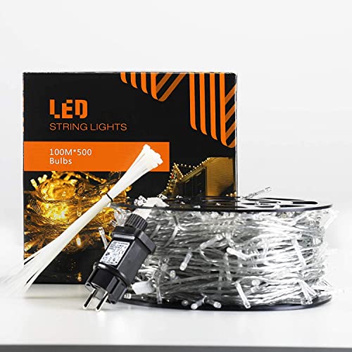 Elegear Catena Luminosa Esterno 100M 500 LEDs Impermeabile Catena Luminosa Filo Luci Esterno per Camere da Letto Giardino Feste Matrimonio