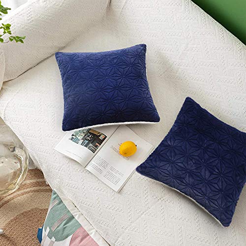 Elegear 2 Pezzi Fodere per Cuscini 45x45cm, Federe Cuscini Morbido Decorativi Federe in Velluto Copricuscini Super Morbido Peluche Fodere Quadrate per Divano Sedie Letto Soggiorno Camera, Blu