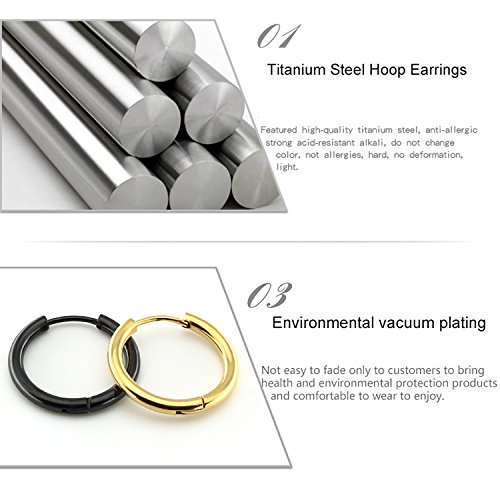 Nota: "Glittel" è un fornitore regolare di questo prodotto e "tianweikeji" fornisce falsi. Distinguili chiaramente. Per non subire perdite. IN acciaio di alta qualità - tutte le 5 paia di orecchini dei cerchi sono realizzati in acciaio inox lucidato a mano