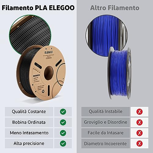 ELEGOO Filamento PLA 1.75mm Nero 1KG, Filamento per Stampante 3D, Precisione Dimensionale +/- 0.02mm, Filamento per La Maggior Parte delle Stampanti 3D