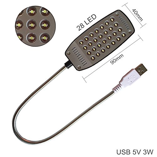 Eleidgs 2Pack Con interruttore 28 Luce USB LED, luce della lampada flessibile a collo di cigno USB guidato per i viaggiatori di notebook PC o laptop campeggio trekking lettura grado di lettera (nero)