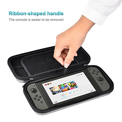 Elekele- Custodia Rigida per Nintendo Switch Case Porta Console Super Spaziosa Porta Accessori Nintendo e 12 Cartucce con Laccio Portatile (Argento, PC)