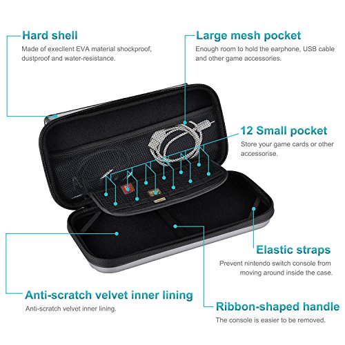 【CUSTODIA PREMIUM】 Protegge e MANTIENE FERMA la tua console Nintendo e quindi anche piu' facile da portare in giro. Capienza super con spazi dedicati per ogni accessorio Nintendo. Resistente alle cadute, graffi e colate d'acqua (ma non immergibile ).