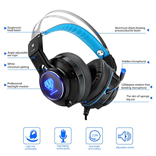 Elekele Gaming Headset con microfono per nuova Xbox One, PS4, interruttore Nintendo, effetto di riduzione delle emissioni di rumore, Alto e basso - 3.5mm Surround Stereo USB Headset per USB per Iphone, Ipad, PC, Laptop (Rosso) (Blu)