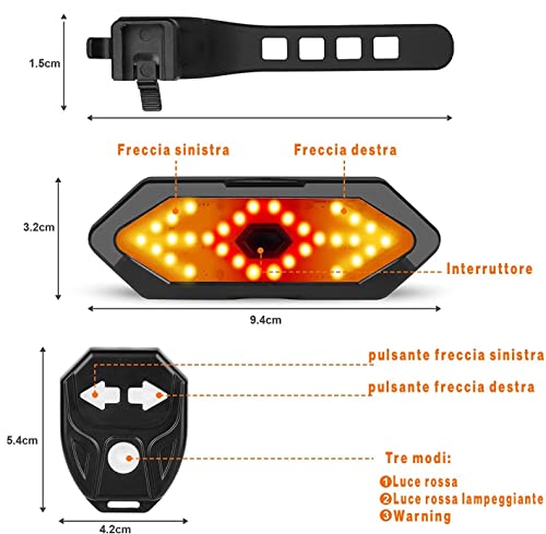 ELEKTROID FRECCE DIREZIONALI BICICLETTA MONOPATTINO, TELECOMANDO WIRELESS, RESISTENTE ALLA PIOGGIA, CICALINO, FACILE DA INSTALLARE LED POTENTI
