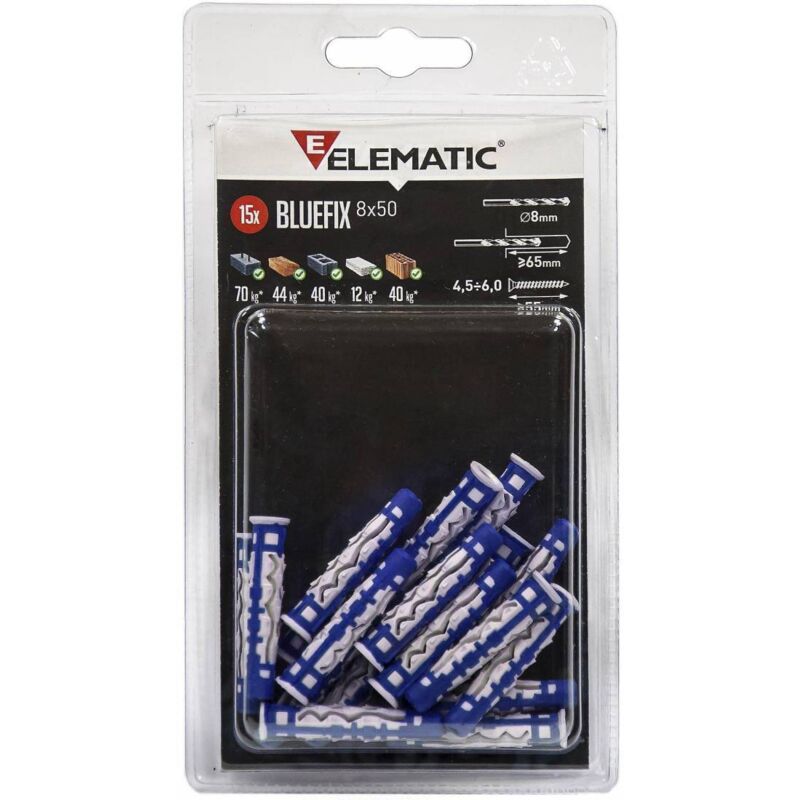 Blue fix in blister. diametro 8 mm lunghezza 50 mm confezione con viti (pz 10)