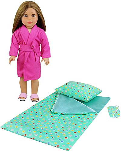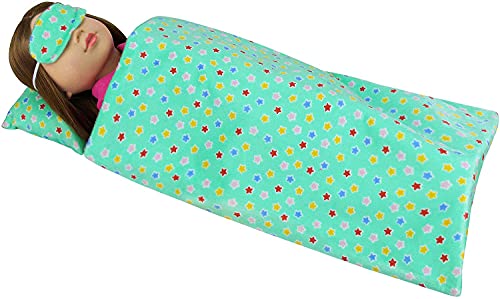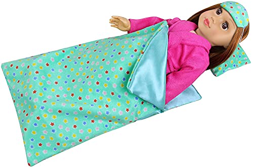 ZITA ELEMENT 3 Pezzi Lenzuola = Sacco a Pelo Verde + Cuscino + Dormire Maschere Occhio per 18 Pollici American Girl, Madame Alexander, Our Generation Bambole Dolls